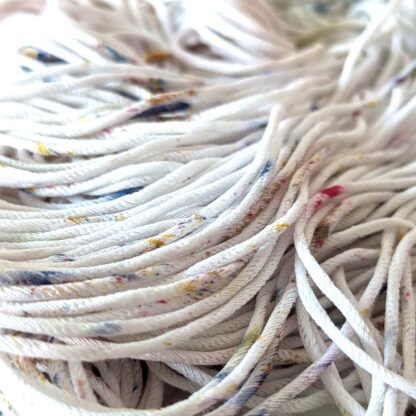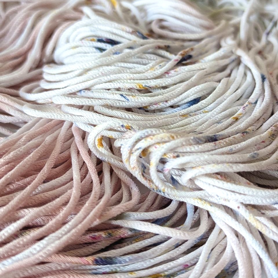 Шелковистый хлопковый шнурочек заполнен полиамидом и от этого имеет объемную форму нити.